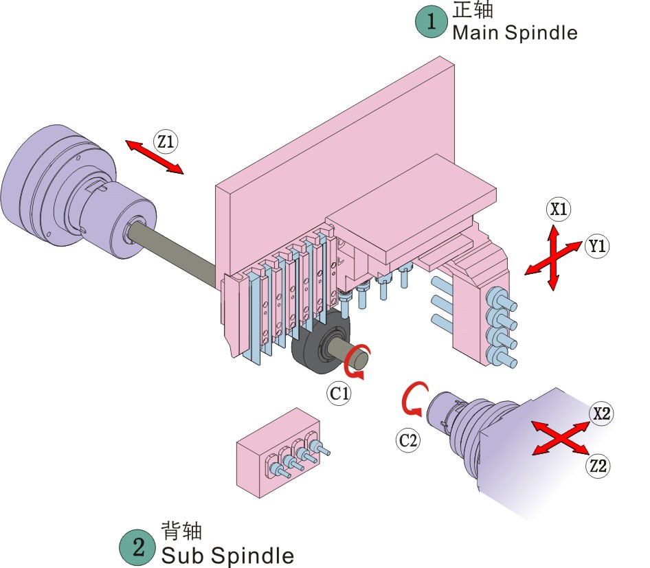 | 移動(dòng)軸數(shù) | 5軸 | X 1 、Y 1 、Z 1 、X 2 、Z 2 | |